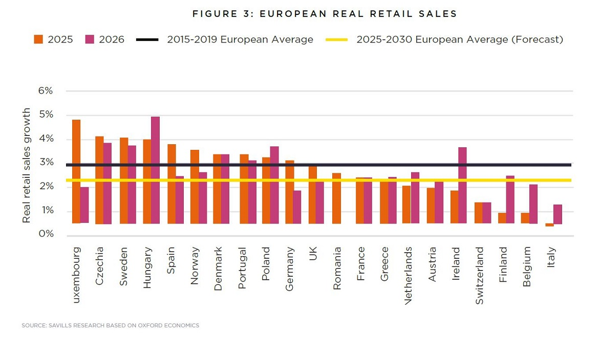 Recent retailmarktonderzoek van Savills toont aan dat de internationale expansie van fysieke winkels in 2025 sterk is toegenomen in Europese steden als Amsterdam, Milaan, Berlijn en Zürich. Met name Amerikaanse food & beverage-concepten en modemerken nemen hierin het voortouw. Europese merken blijven wel regionaal dominant met 56% van de openingen.