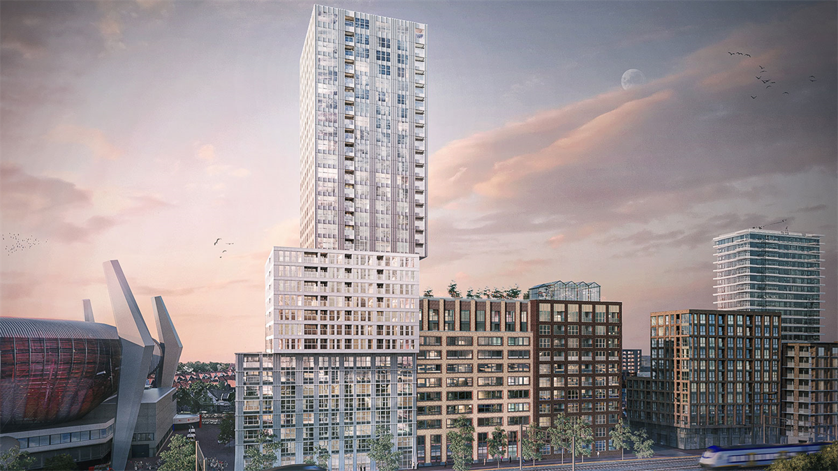 Eurostaete beschikt over een commerciële plint op de begane grond, met daarboven 479 appartementen in de vrije en gereguleerde huursector.