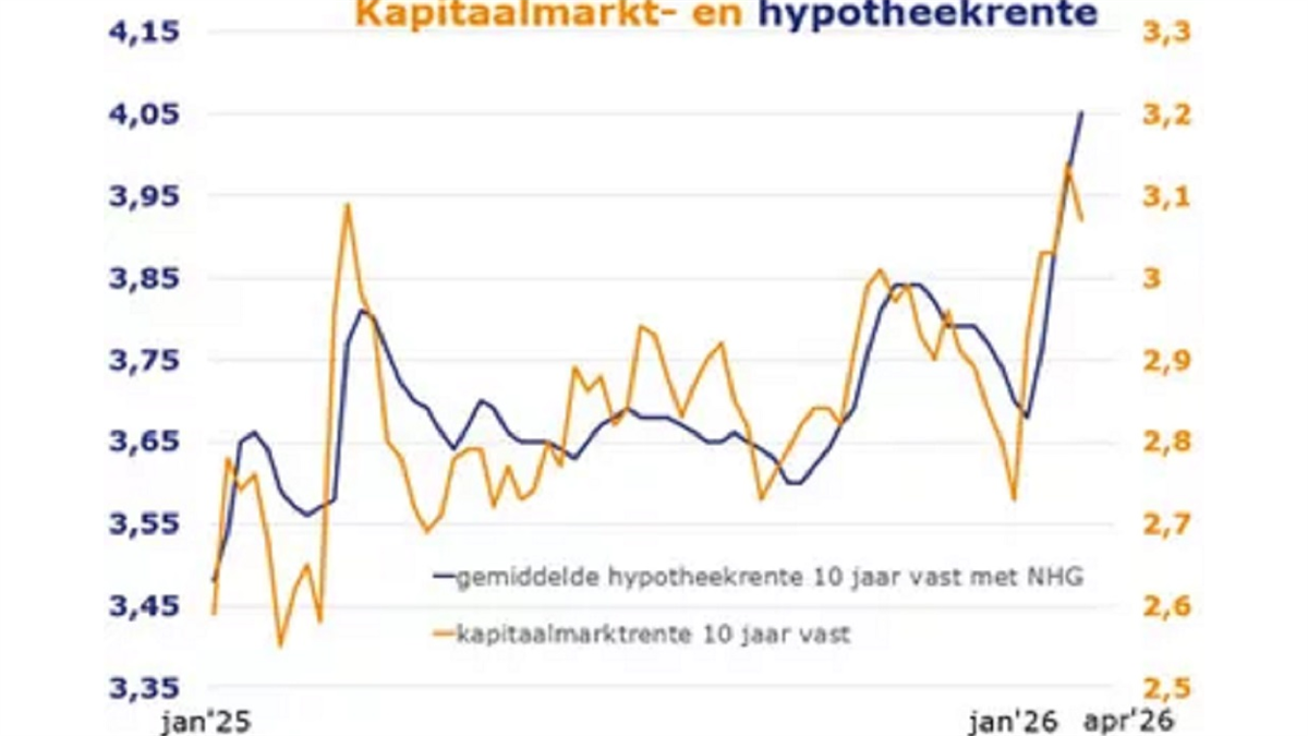 De gemiddelde 10 jaar vast hypotheekrente met NHG steeg afgelopen week met 0,07% naar 4,05%. De hypotheekrentes stegen echter minder hard dan in de drie weken daarvoor. Ook hielden meerdere geldverstrekkers hun rente gelijk, zoals ING, Lot Hypotheken, Moneyou en NIBC Hypotheken. Op de financiële markten daalden de 10 jaars-rentes licht.