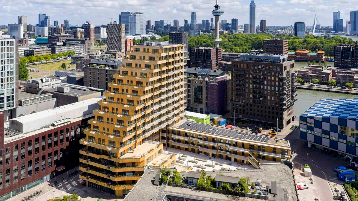 De 50 meter hoge woontoren van Nice Developers & Era Contour (TBI) bestaat uit 109 appartementen en is circulair en biobased ontwikkeld. Architectenbureau Mei architects and Planners liet zich bij het ontwerp inspireren door de sawa’s, terrasvormige rijstvelden, uit Maleisië. Het gebouw fungeert met zijn 3000 inheemse planten in geïntegreerde plantenbakken -goed voor 600 meter aan groen- en 140 nestkasten voor vogels en vleermuizen als een ecosysteem in de stad.