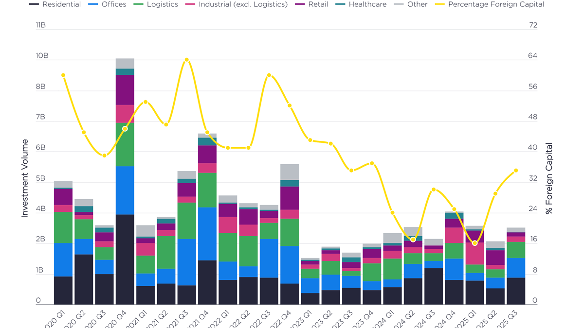 Het investeringsvolume in de Nederlandse vastgoedmarkt is in het derde kwartaal gestegen, meldt Savills. Buitenlandse partijen maken een opmars.