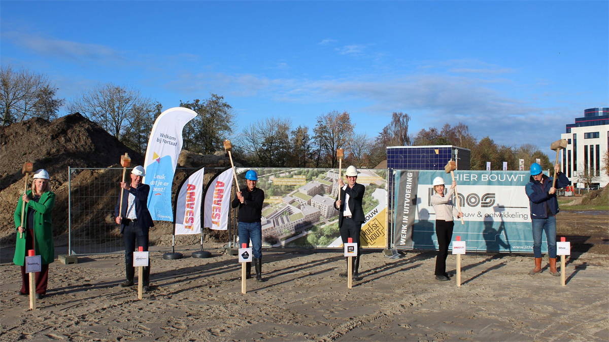Wethouder Willem-Jan Stegeman (Hoefkwartier), Heleen Aarts (Amvest), Rens Götz (Stichting Pensioenfonds voor de Woningcorporaties), Minko de Weerd (Portaal), Richard Schaap (Groep Caenen Capital Fund NL) en Tonny Gerritsen (Lithos) sloegen gezamenlijk de eerste symbolische palen.
