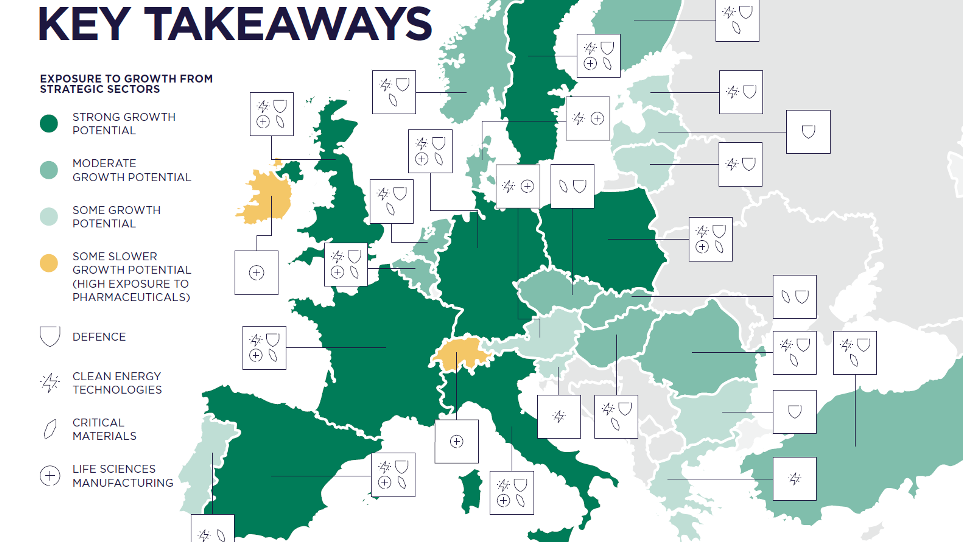 Andere sectoren waar de vraag toeneemt, zijn duurzame energietechnologie, kritieke materialen en life sciences. In de duurzame technologiesector wordt de vraag aangejaagd door nieuwe wetgeving in de EU en het Verenigd Koninkrijk. ‘Hierdoor groeit de vraag naar industriële ruimte voor onder meer zonnepanelen, windturbines en kleine modulaire kernreactoren.’ Het kan gaan om eigen gespecialiseerde productiegebouwen, maar ook om conventionele gehuurde locaties voor assemblage en logistiek. Volgens de onderzoekers loopt Duitsland hierin voorop.