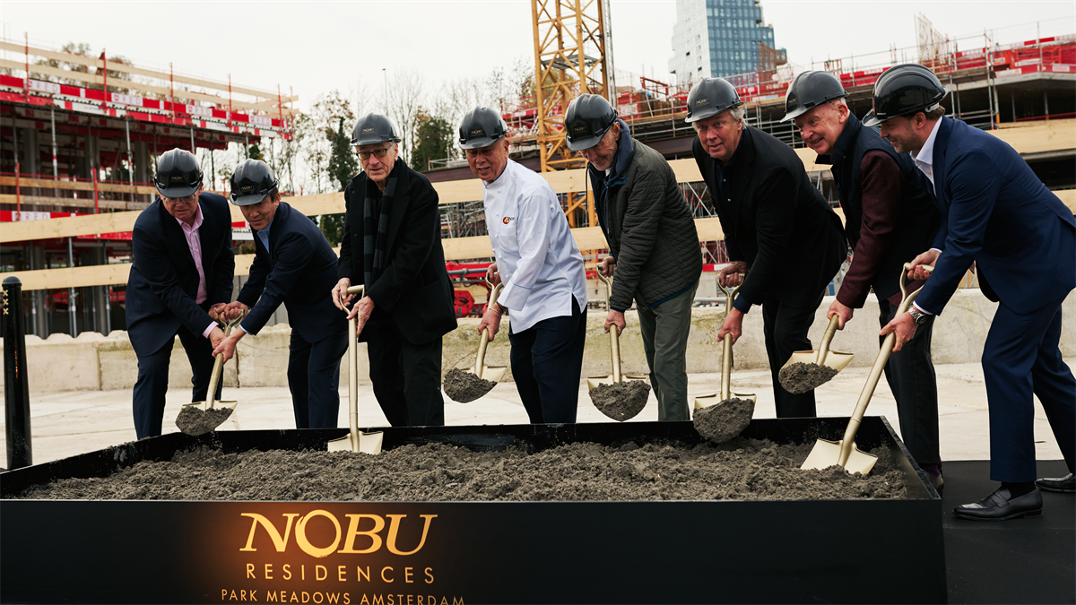 In ons land trekt Nobu nu op met ontwikkelaar Breevast. Nobu Residences Park Meadows Amsterdam, bij het Beatrixpark, gaat bestaan uit twee torens, ontworpen door architecten UNStudio en Ben van Berkel. Er komen in totaal – naast restaurant en hotel – 213 huur- en koopappartementen. Henk Brouwer, CEO van Breevast, noemt het ‘de introductie van een nieuw niveau van luxe op de Nederlandse markt’. Deze week kwamen de drie Nobu-oprichters samen met CEO Trevor Horwell naar Amsterdam om samen met Brouwer de eerste steen te leggen.