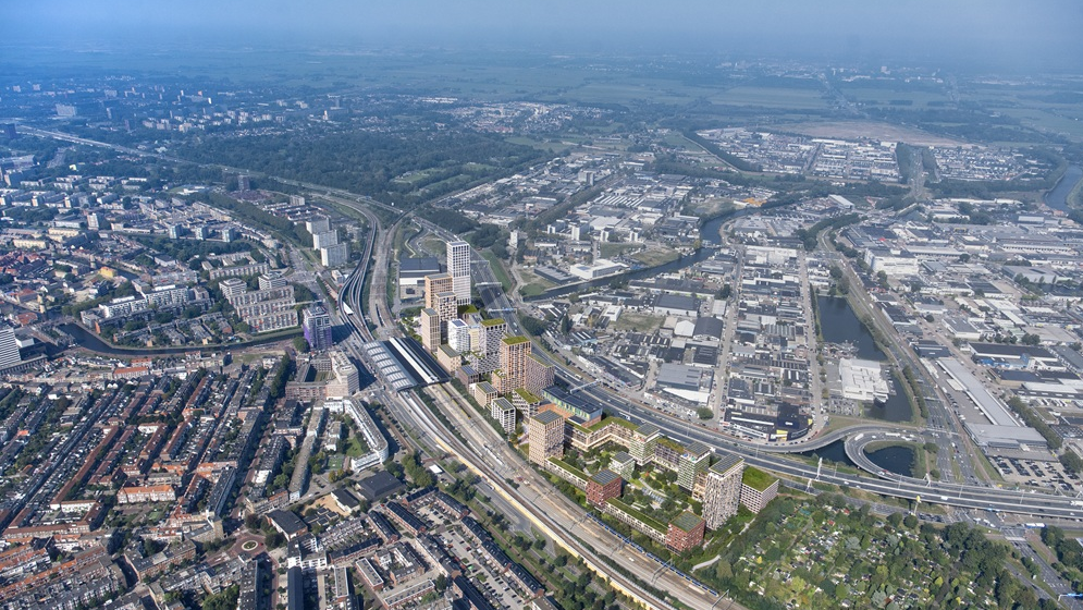 In een strook van 800 meter lang en 100–150 meter breed moet een hoogstedelijk autovrij woonmilieu ontstaan, waar je de fiets of de benenwagen pakt om naar je werk te gaan, te winkelen of te recreëren in de groene buitenruimte. Het lijkt een behoorlijke uitdaging om op 8 hectare, ingeklemd door een snelweg en het spoor, een leefbare wijk te realiseren. Door te kiezen voor hoge, geluidwerende gevels aan de kant van de snelweg en wat lagere aan de kant van het spoor, die bezonning mogelijk maken, ontstaat een vallei waarin het goed toeven is.