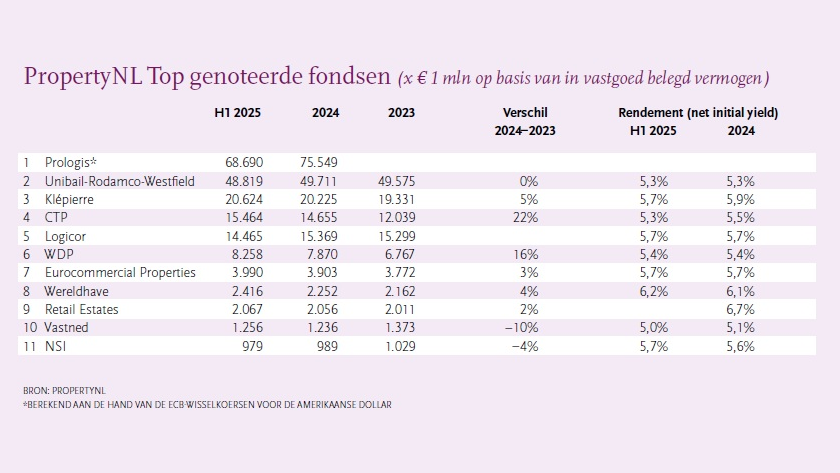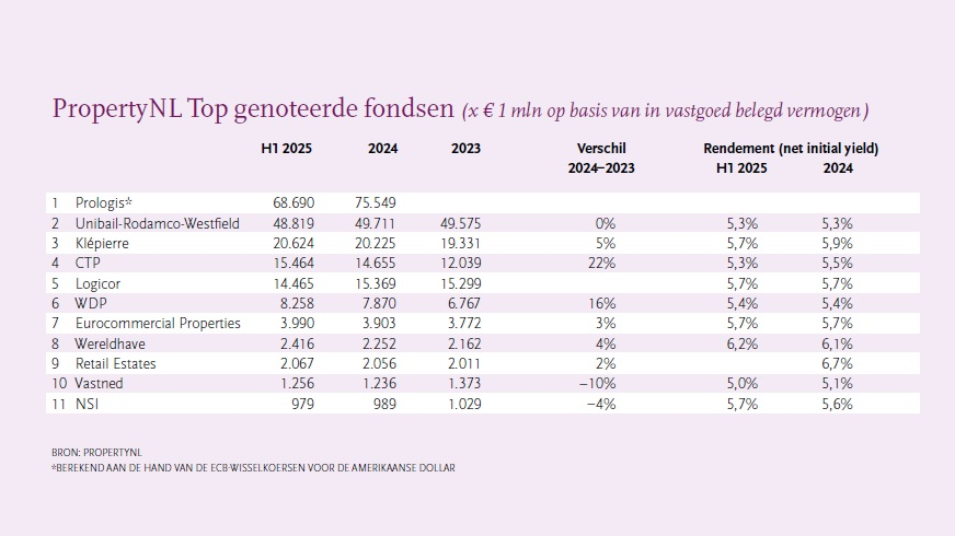 De rendementen van de fondsen ontlopen elkaar niet veel, maar in de portefeuilleomvang zien we hier en daar wat uitschieters. Logistiek specialist CTP vergroot zijn portefeuille met bijna een kwart, doordat voor € 1,2 mrd aan opgeleverde projecten is toegevoegd. Bovendien leverde een herwaardering nog eens een half miljard aan extra waarde op. WDP groeit ook, door acquisities in Roemenië en Frankrijk, waar de portefeuille werd verdubbeld. Begin 2025 kwam daar nog eens de iconische Renault-fabriek in Vilvoorde bij.